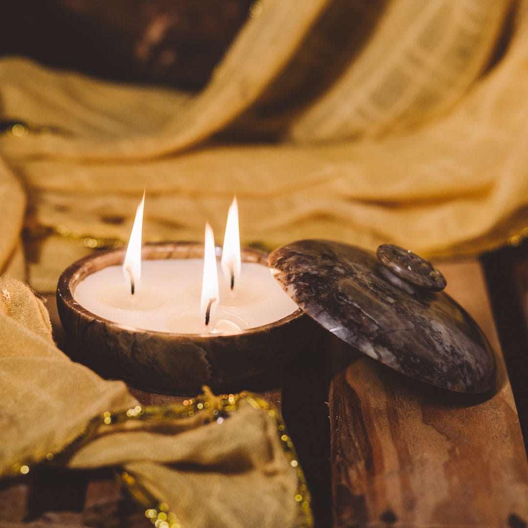 Naturalna indyjska świeca sojowa, w ozdobnej, kamiennej, ręcznie wykonanej szkatułce.
