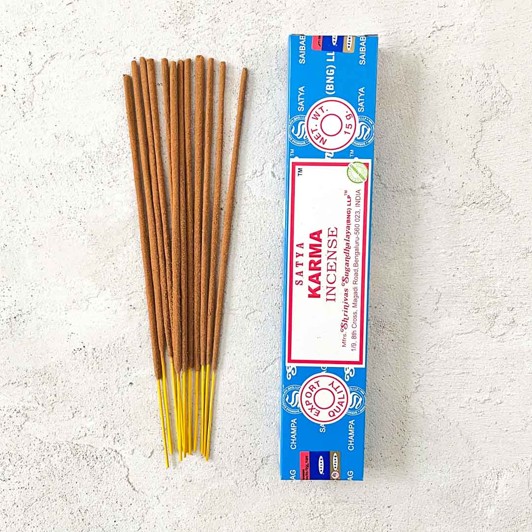 Kadzidełka zostały wykonane ze sproszkowanej masy roślinnej z dodatkiem olejków zapachowych. Zapach KARMA to połączenie aromatu drzewa sandałowego z paczulą, cytryną i miłorzębem.