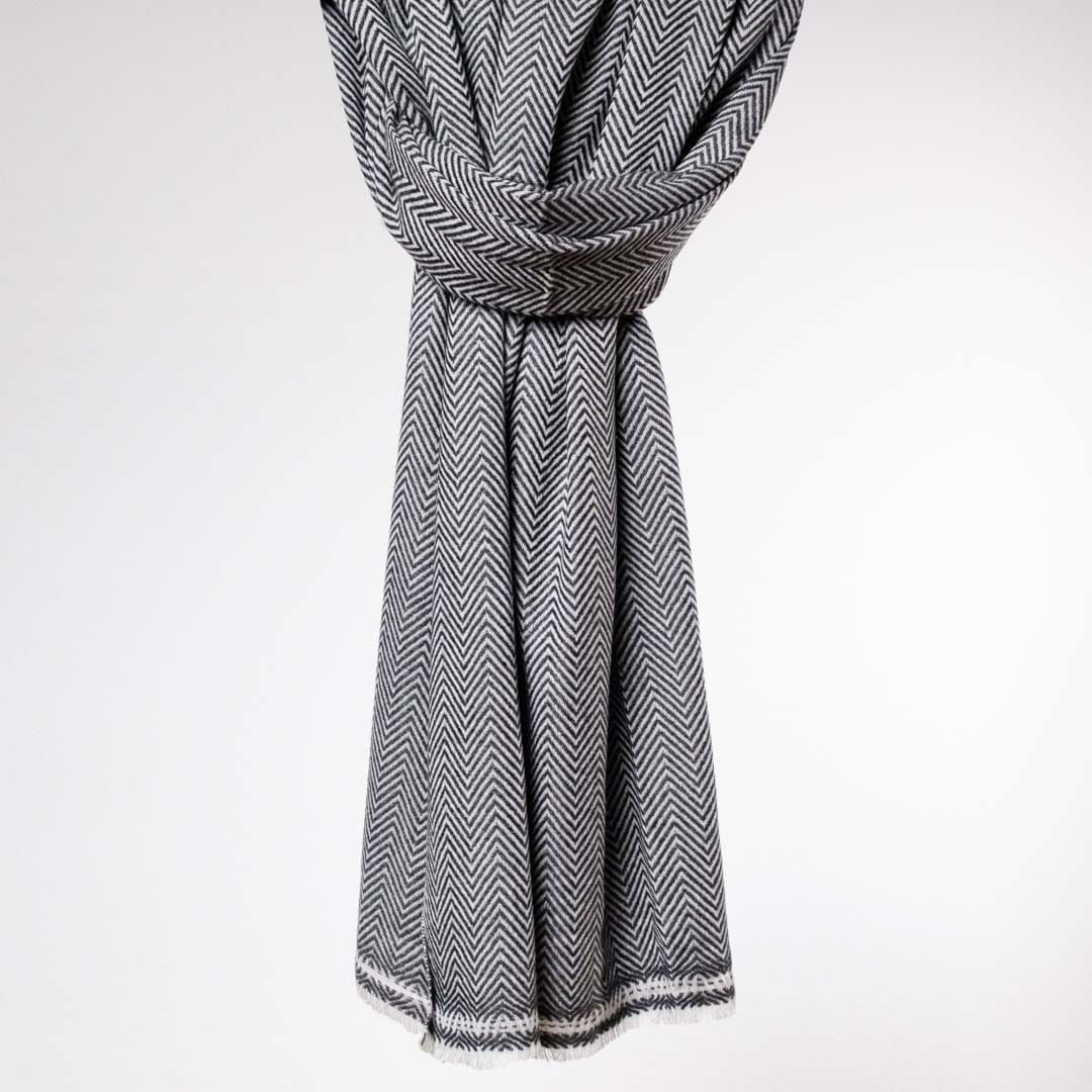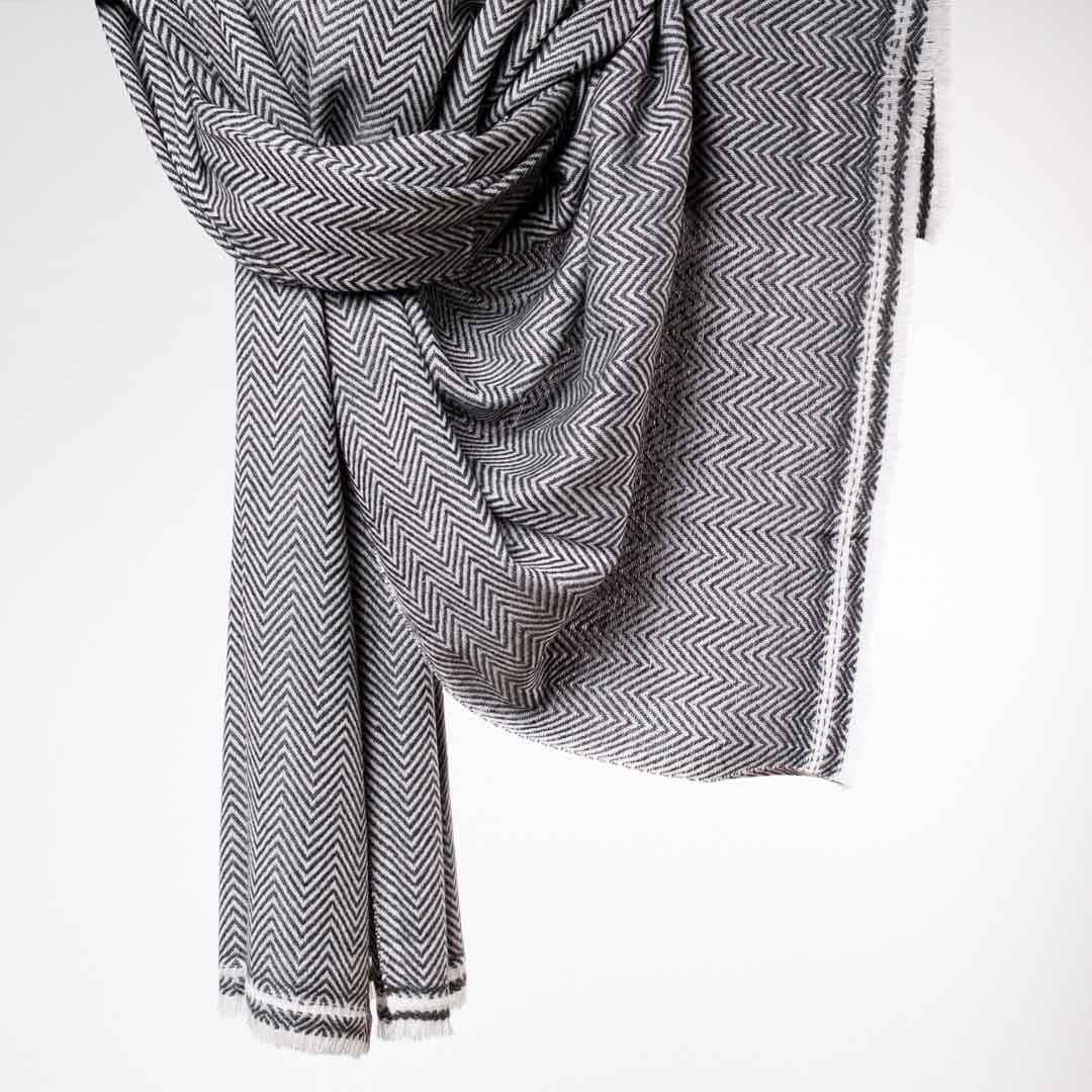 Ciepły, mięsisty i bardzo miły w dotyku szal z kaszmiru i wełny dla najbardziej wymagających zmarźluchów, które lubią otulić się po uszy oraz wszystkich, którzy cenią sobie jakość i klasykę. Szal jest pokryty naturalnym, delikatnym meszkiem i przepięknie się układa. Jest lekki, ale daje bardzo dużo ciepła, delikatnie, satynowo się błyszczy (charakterystyczna cecha kaszmiru). Odpowiednio pielęgnowany posłuży Ci przez długie lata i będzie uniwersalnym dodatkiem do wielu stylizacji, szczególnie w chłodniejsze dni.