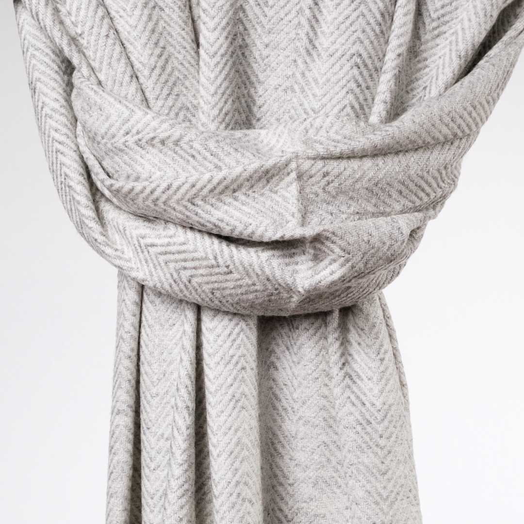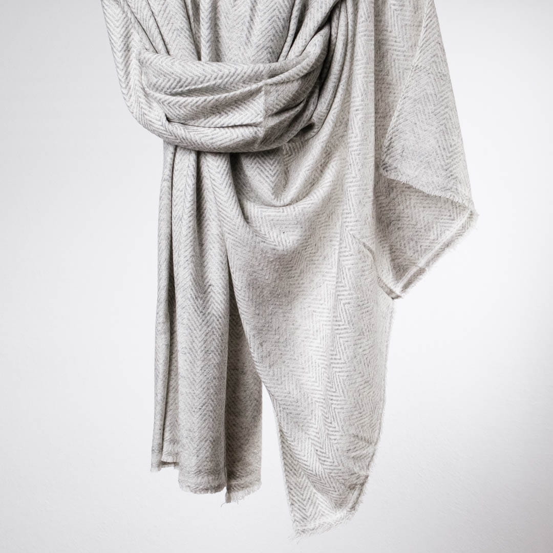 Ciepły, mięsisty i bardzo miły w dotyku szal z kaszmiru i wełny dla najbardziej wymagających zmarźluchów, które lubią otulić się po uszy oraz wszystkich, którzy cenią sobie jakość i klasykę. Szal jest pokryty naturalnym, delikatnym meszkiem i przepięknie się układa. Jest lekki, ale daje bardzo dużo ciepła, delikatnie, satynowo się błyszczy (charakterystyczna cecha kaszmiru). Odpowiednio pielęgnowany posłuży Ci przez długie lata i będzie uniwersalnym dodatkiem do wielu stylizacji, szczególnie w chłodniejsze dni.