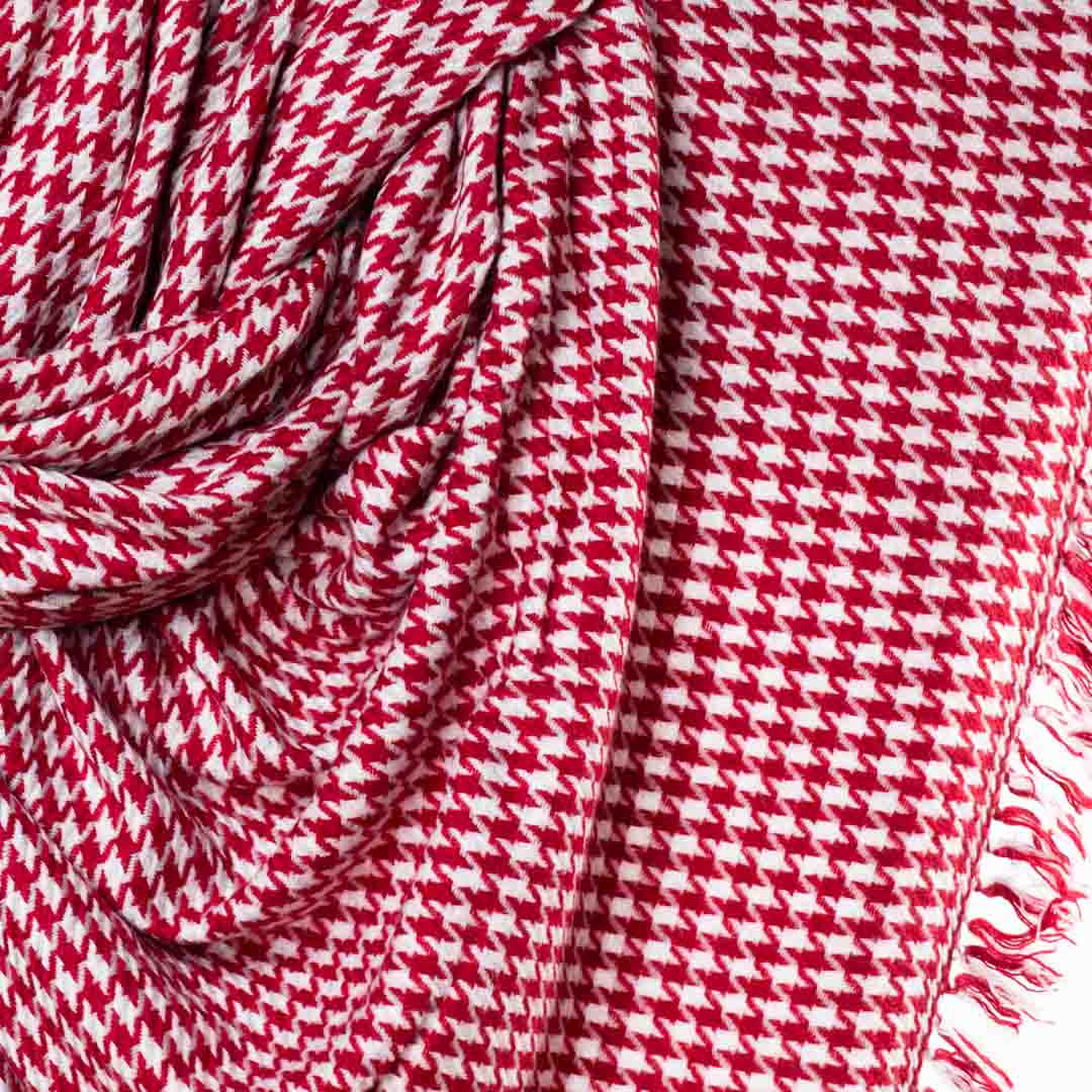SZAL Z KASZMIRU I WEŁNY oversize 03 czerwona pepitka