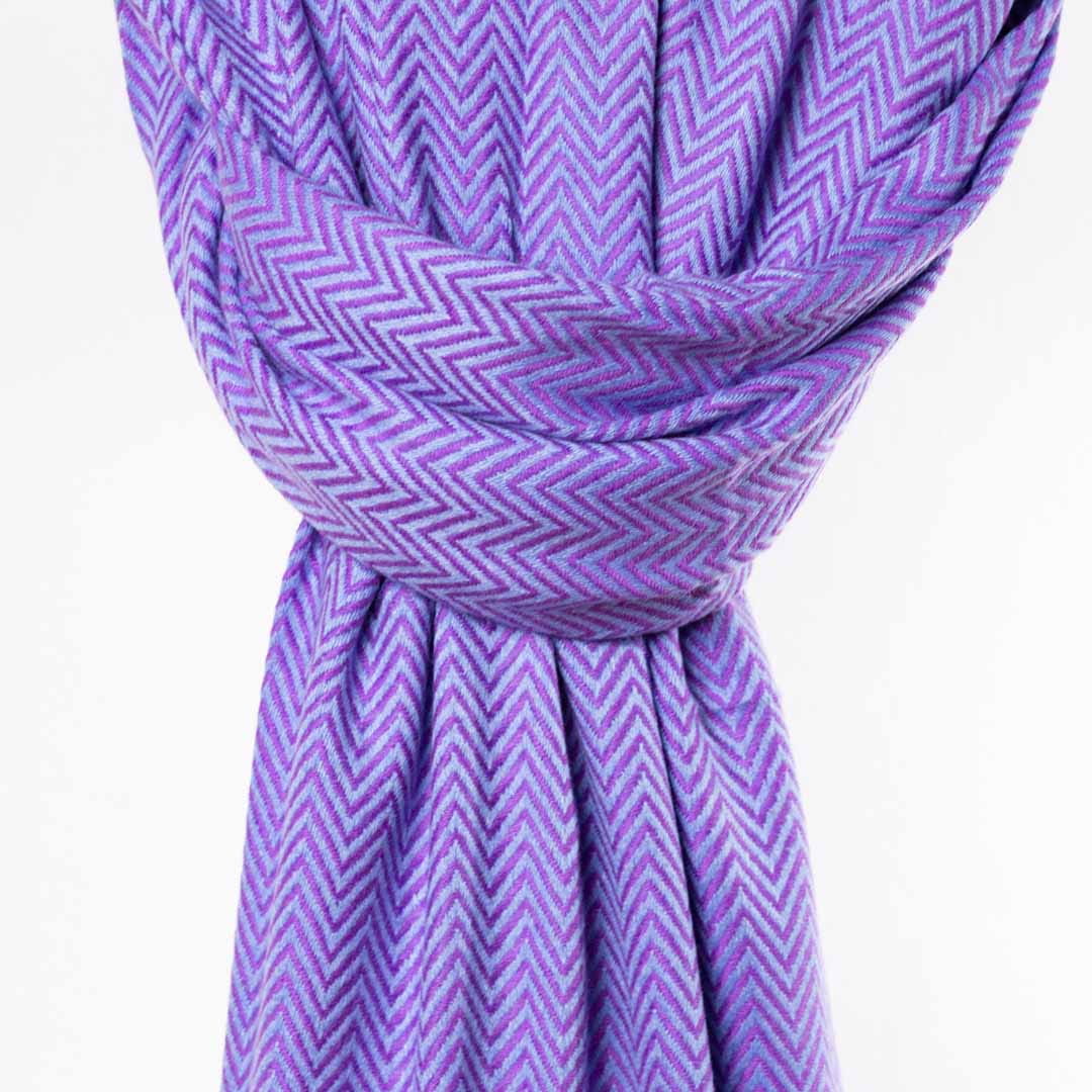Szal został wykonany z wełny i kaszmiru, bez dodatku poliestru (częsta praktyka w przypadku kaszmirowych produktów). W początkowym okresie noszenia może pozostawiać na ubraniach trochę „kłaczków” (szczególnie na materiałach ciemnych lub podatnych na łapanie nitek). Jest to zupełnie normalne zjawisko w przypadku takich tkanin – z czasem szal się „wytrze”, a nitek będzie coraz mniej.