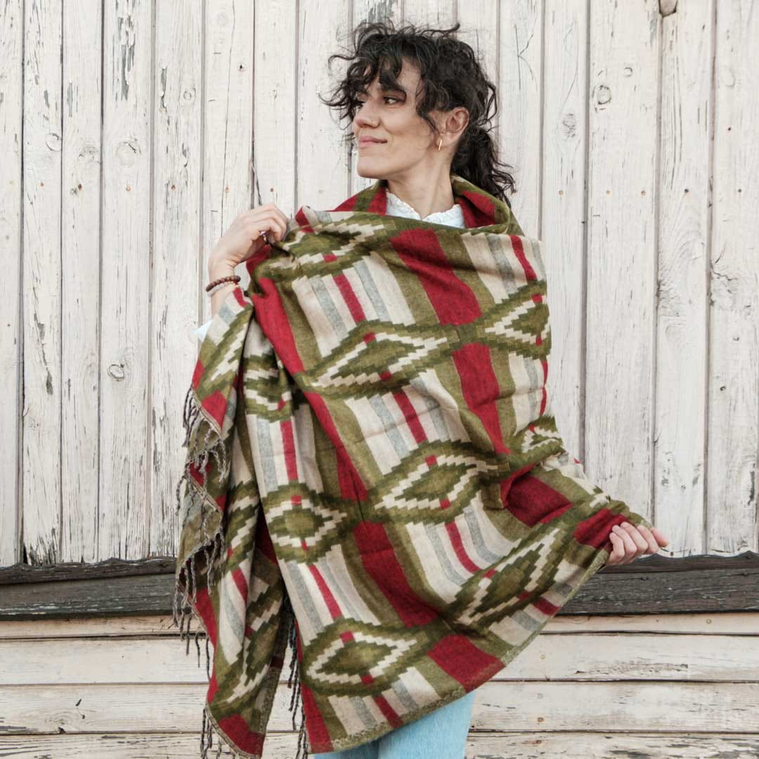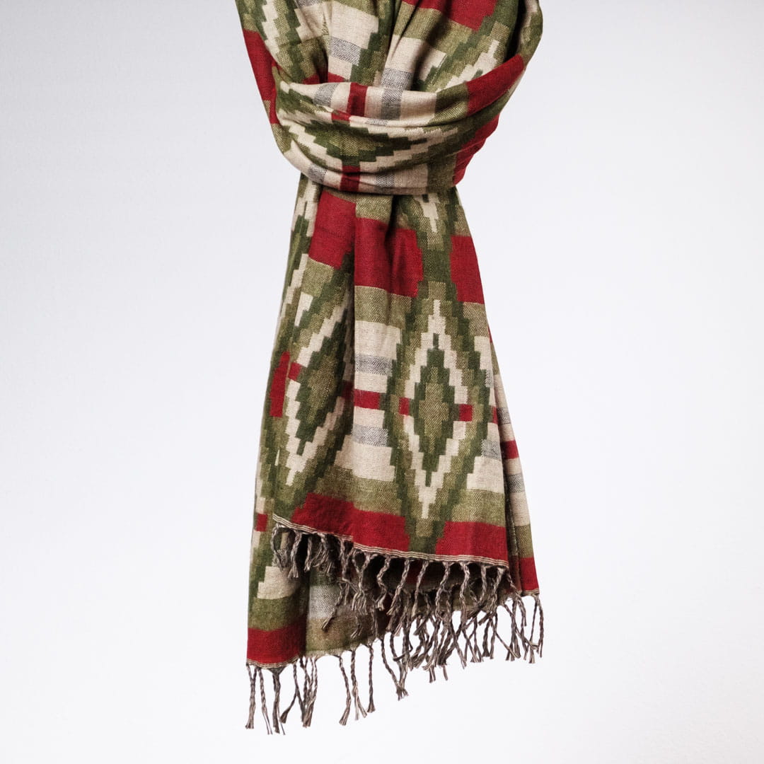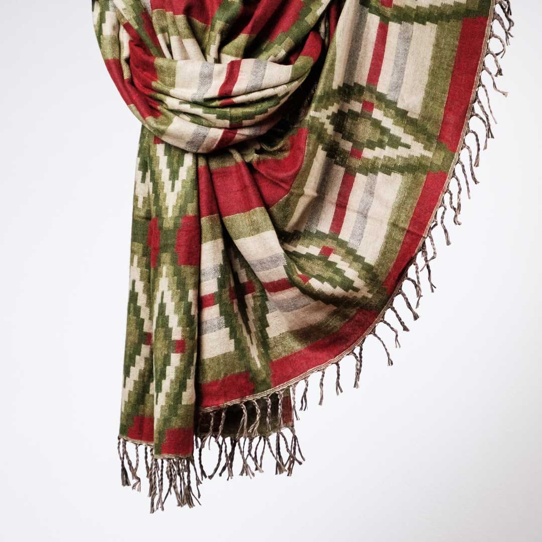 Szal ETHNO 02 zielony z czerwonym