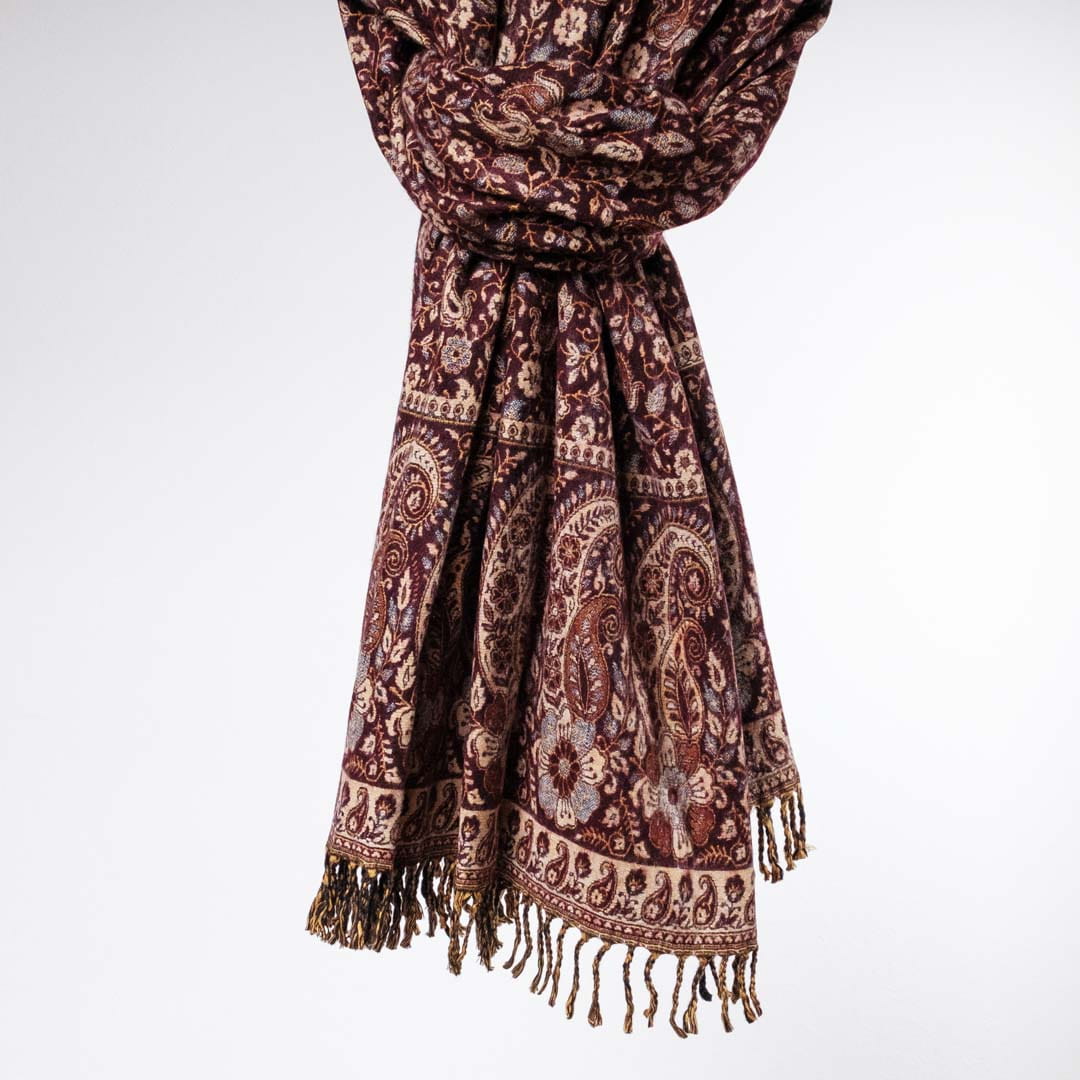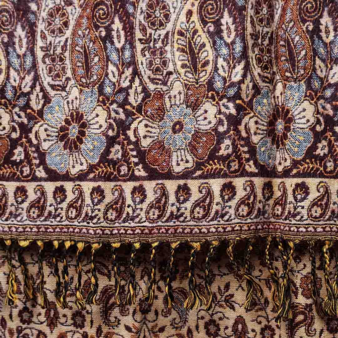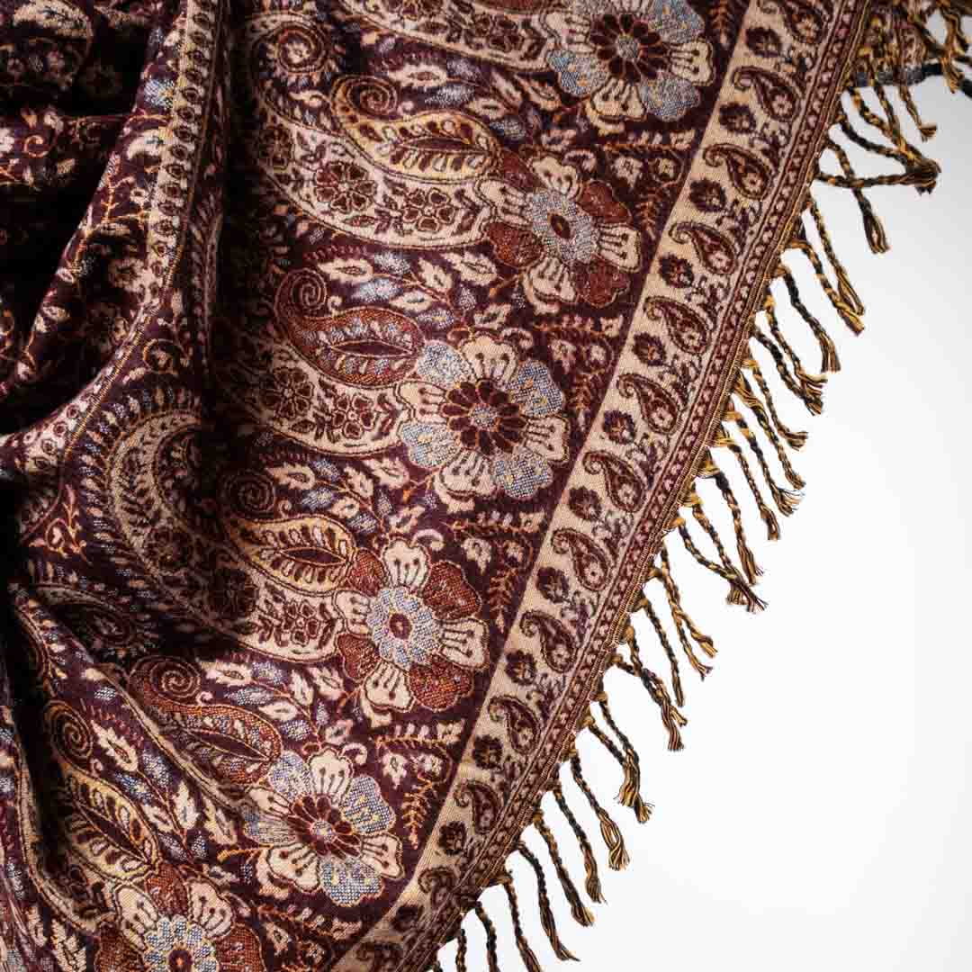 Długi, ciepły, gruby, bogato zdobiony szal w orientalne wzory.